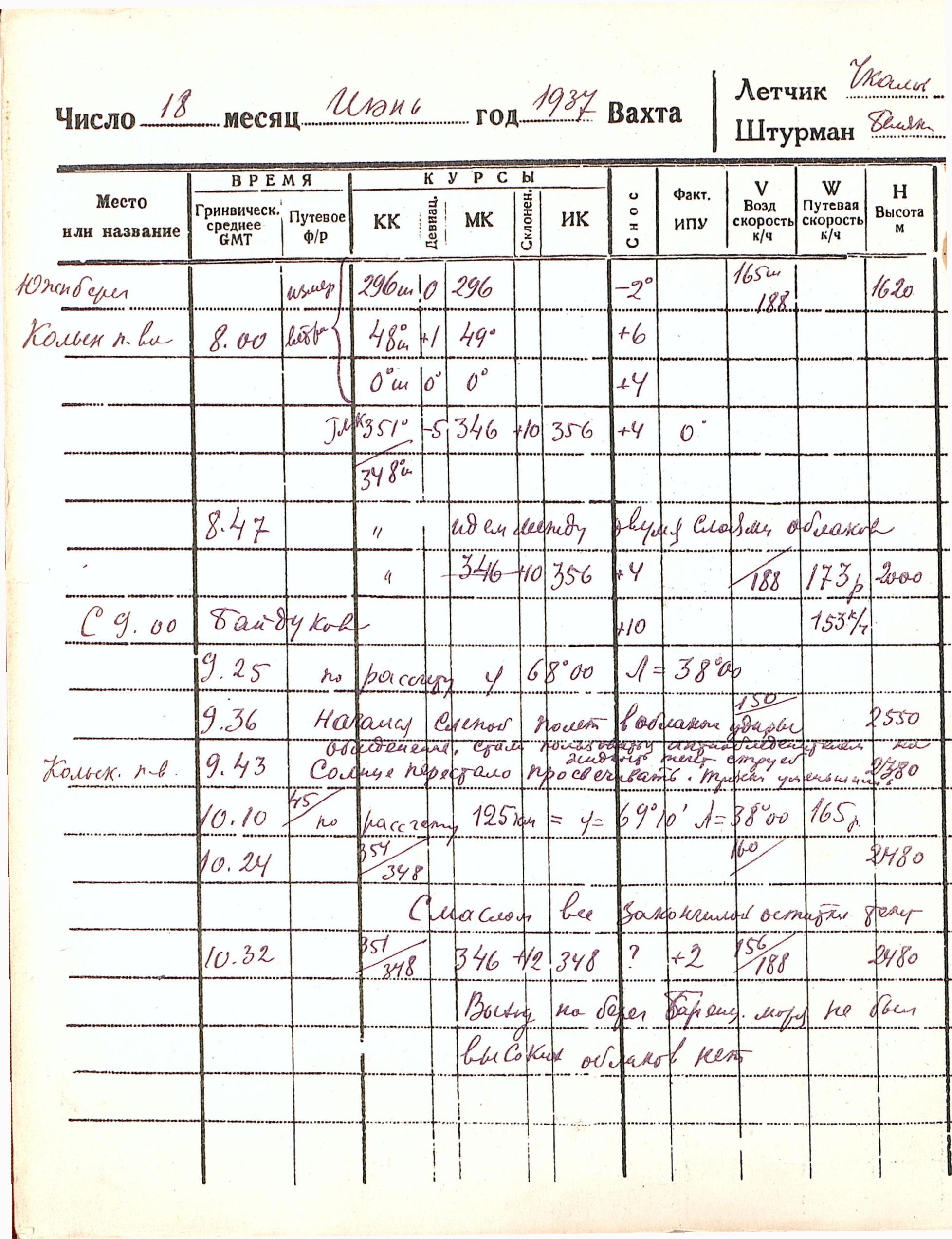 Штурманский бортовой журнал