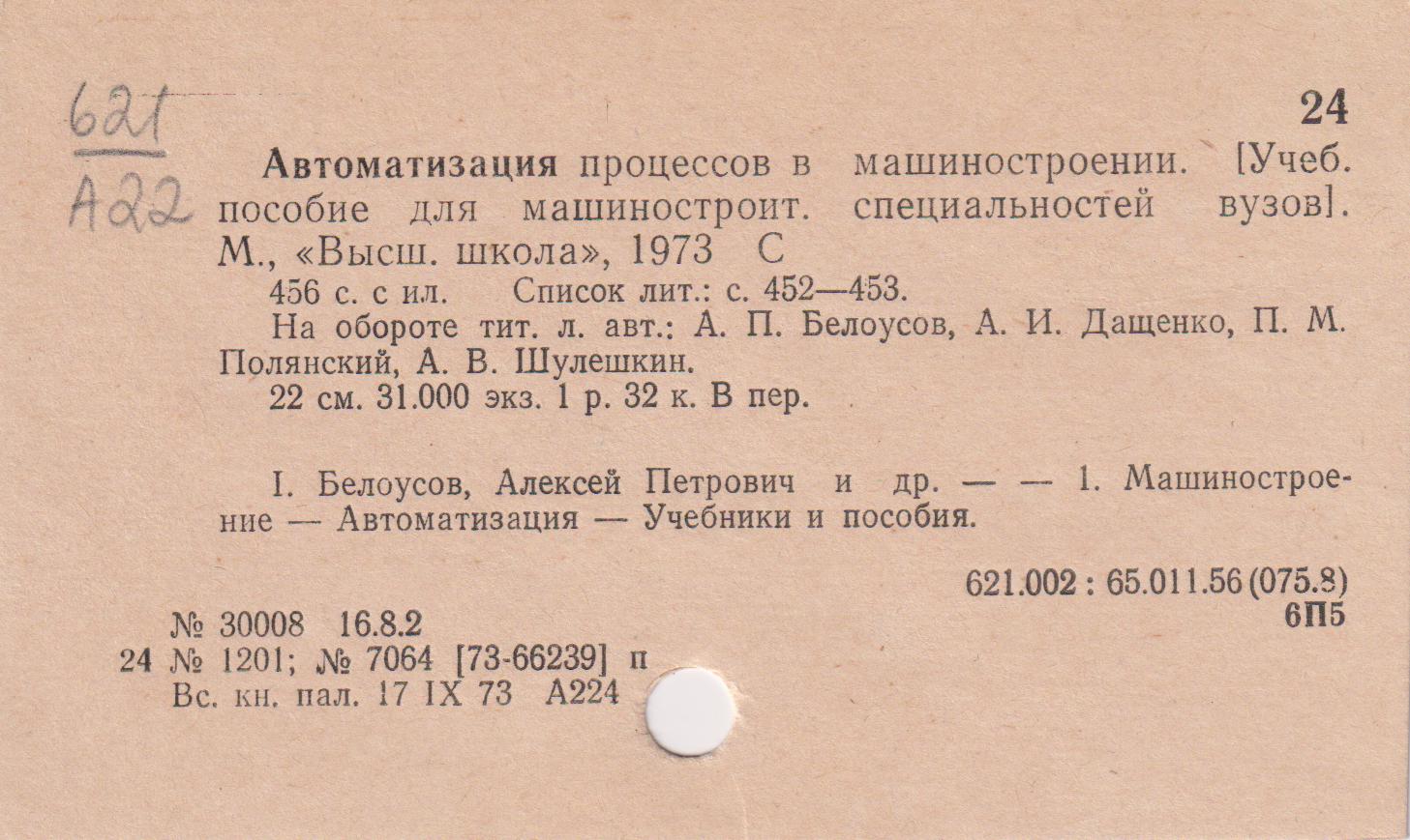 Автоматизация процесса |