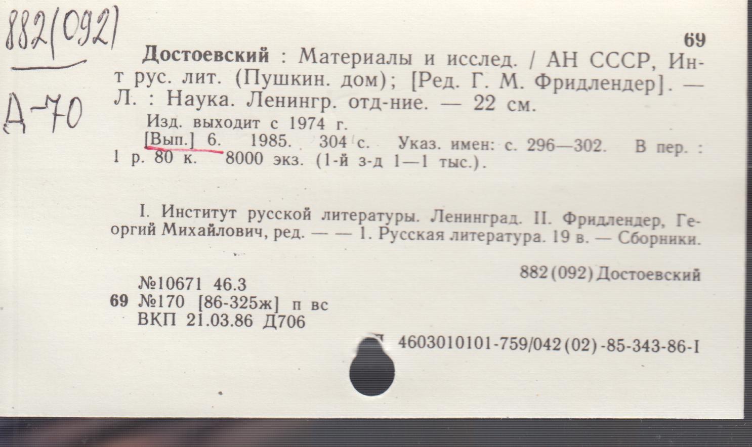 Ф. М. Достоевский. Библиография